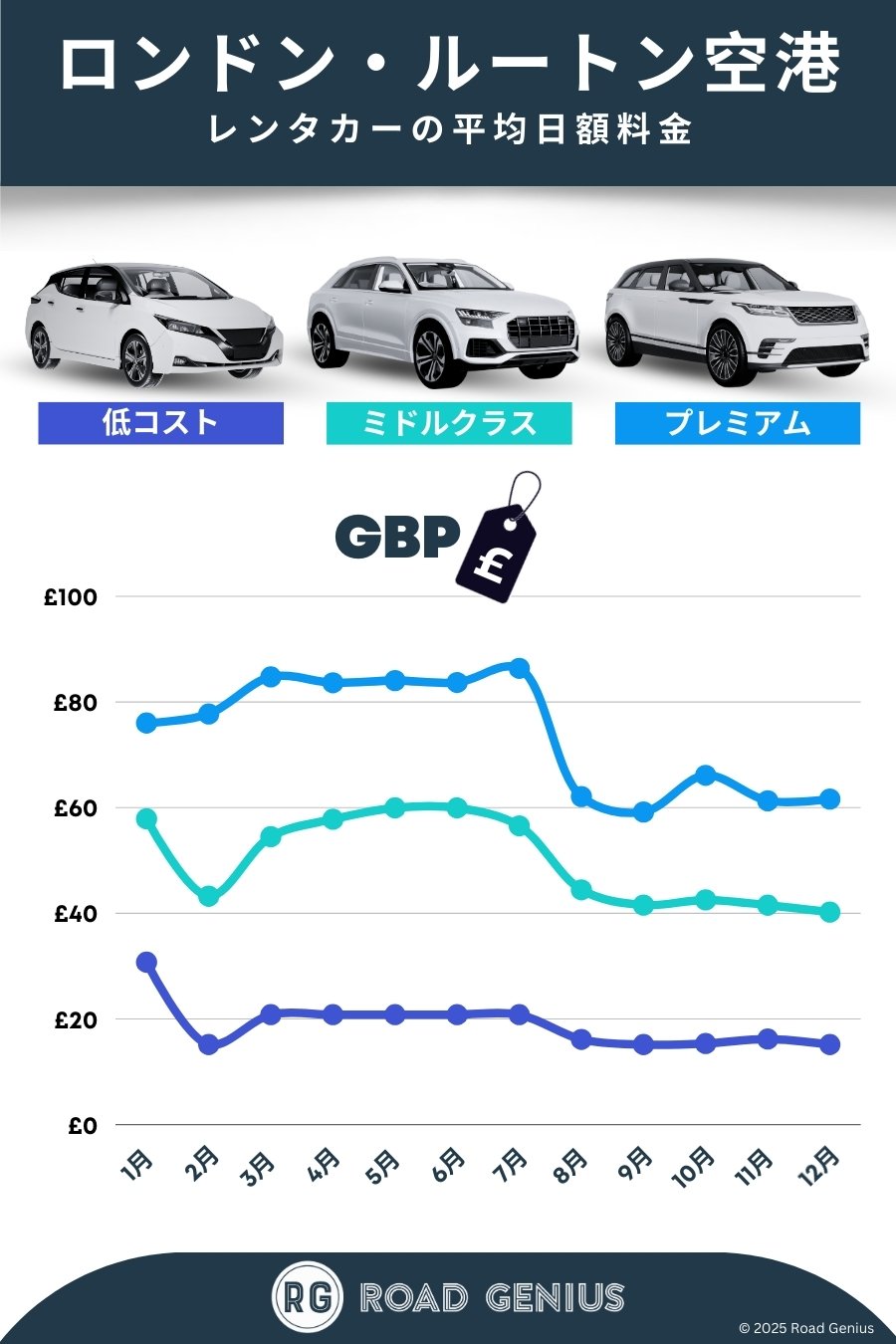平均して、ロンドン・ルートン空港 のレンタカーは1日あたり€48前後で、最安のレンタルは1日あたり€15から利用できます。