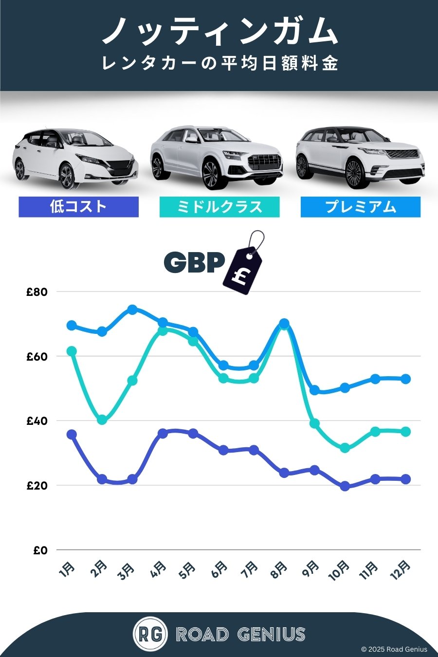 平均して、ノッティンガム のレンタカーは1日あたり€46前後で、最安のレンタルは1日あたり€20から利用できます。