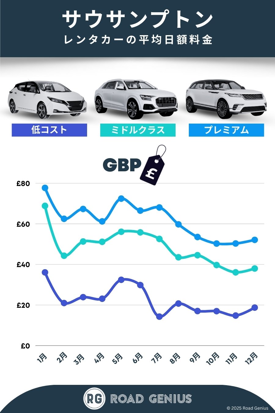 平均して、サウサンプトン のレンタカーは1日あたり€44前後で、最安のレンタルは1日あたり€14から利用できます。