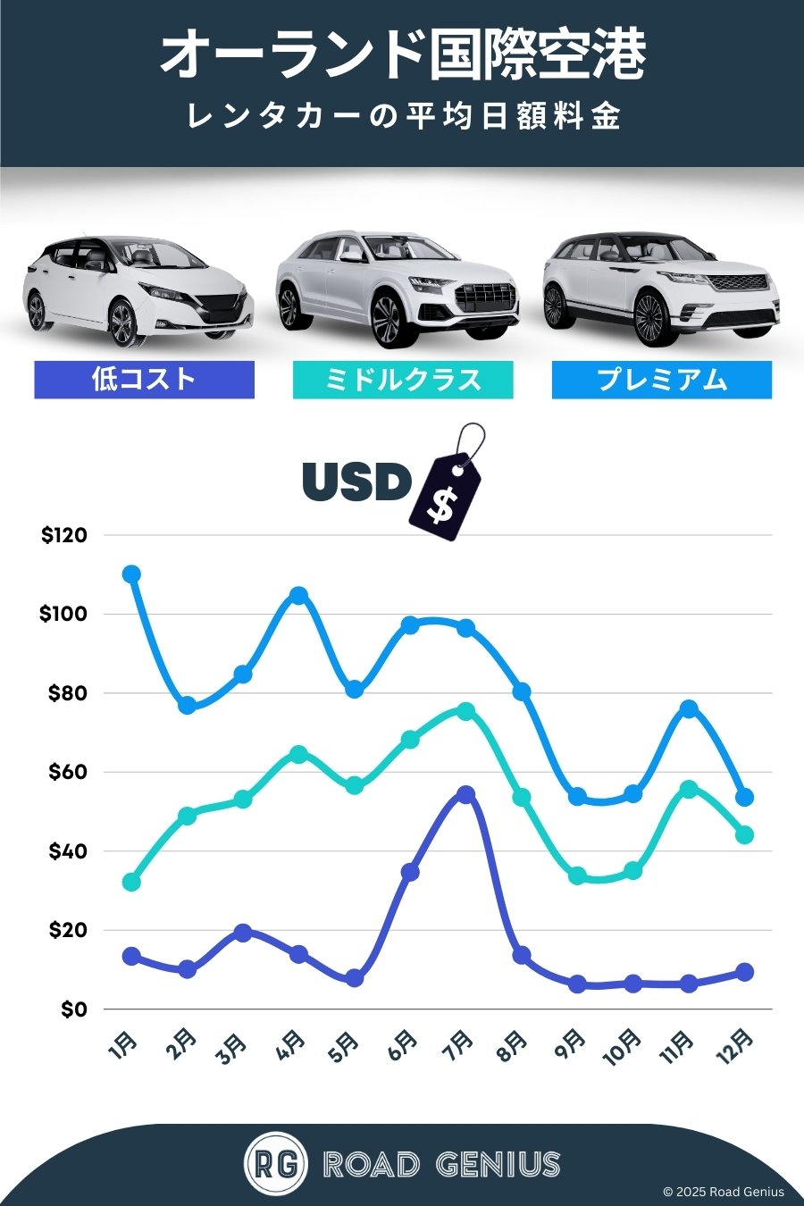 平均して、オーランド国際空港 のレンタカーは1日あたりUSD$50前後で、最安のレンタルは1日あたりUSD$6から利用できます。