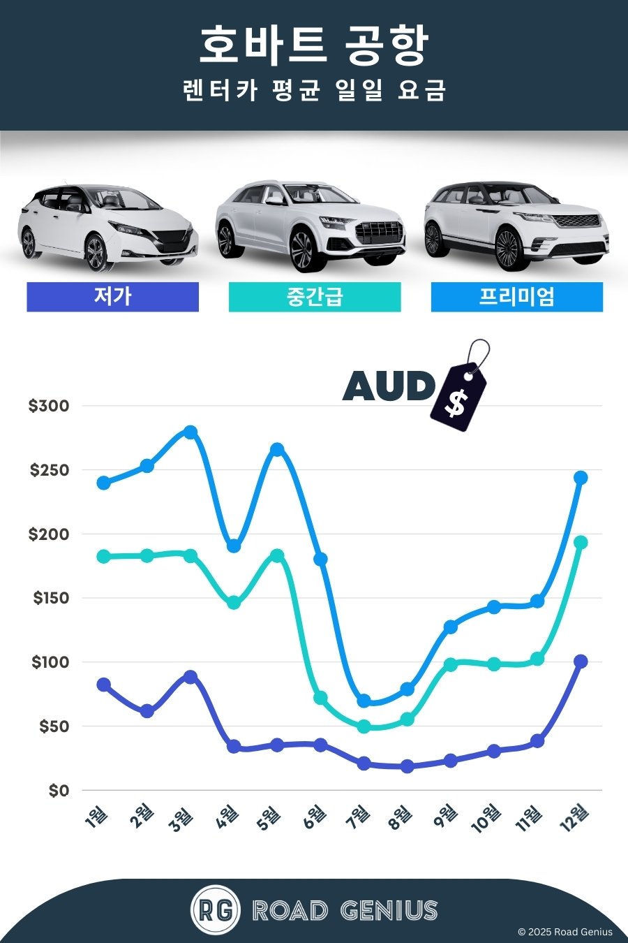 호바트 공항(HBA)의 렌터카 평균 요금은 하루 약 AUD $160이며, 최저 요금은 AUD $19부터입니다.