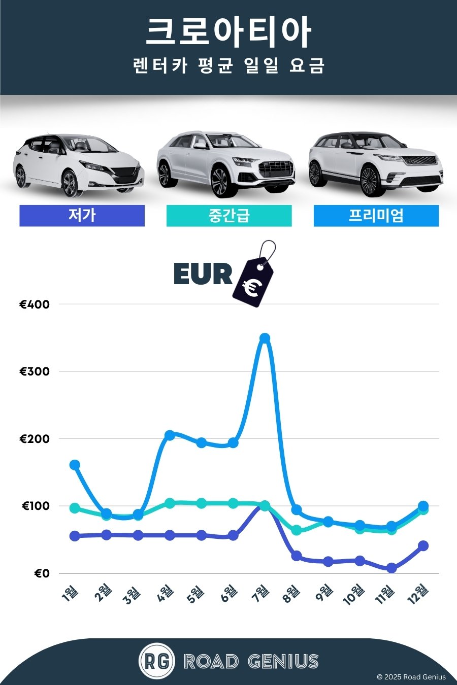 로드 지니어스에서 가장 합리적인 크로아티아 렌터카 상품을 찾아보세요. SUV, 해치백, 다인승 차량의 실시간 요금을 비교하고, 예약 수수료 없이 간편하게 예약할 수 있습니다. 자그레브 공항, 풀라 공항 등 크로아티아 전역의 공항 및 시내 영업소에서 자동차, 편도 렌트, 국경 통과 등 다양한 옵션을 비교해 보세요. 여름 휴가철 방문 시 저렴한 요금을 확보하기 위해 미리 예약하고, 아름다운 해안과 섬, 국립공원으로 떠나는 멋진 로드 트립을 준비하시기 바랍니다.