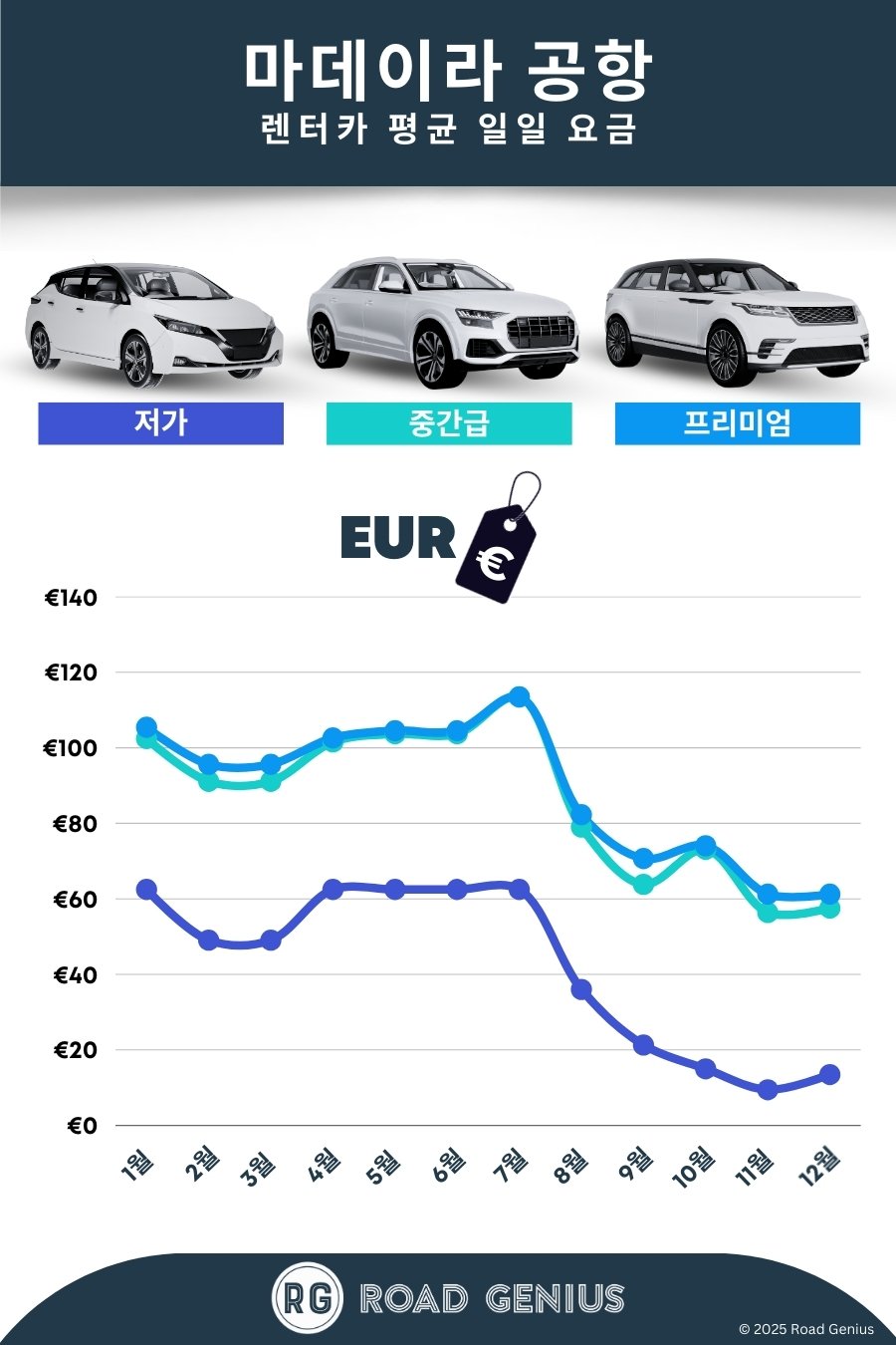 온라인 사전 예약 및 비교: 온라인으로 미리 예약하면 현장 예약보다 30–50% 저렴합니다. 여러 렌터카 브랜드, 차종, 픽업 장소의 가격을 꼼꼼히 비교하는 것이 좋습니다.