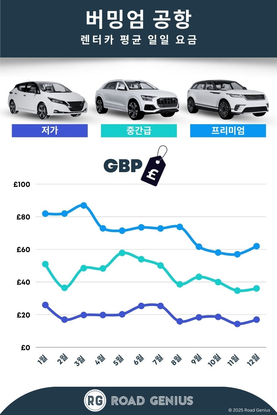 공항과 버밍엄 시내 중 어디서 렌트하는 것이 좋나요? 공항 렌트는 편리하지만 요금이 더 비쌉니다. 버밍엄에 며칠 머문 후 다른 지역으로 이동할 계획이라면, 기차로 시내 이동 후 시내 영업소에서 렌트하는 것이 비용 절약에 도움됩니다.