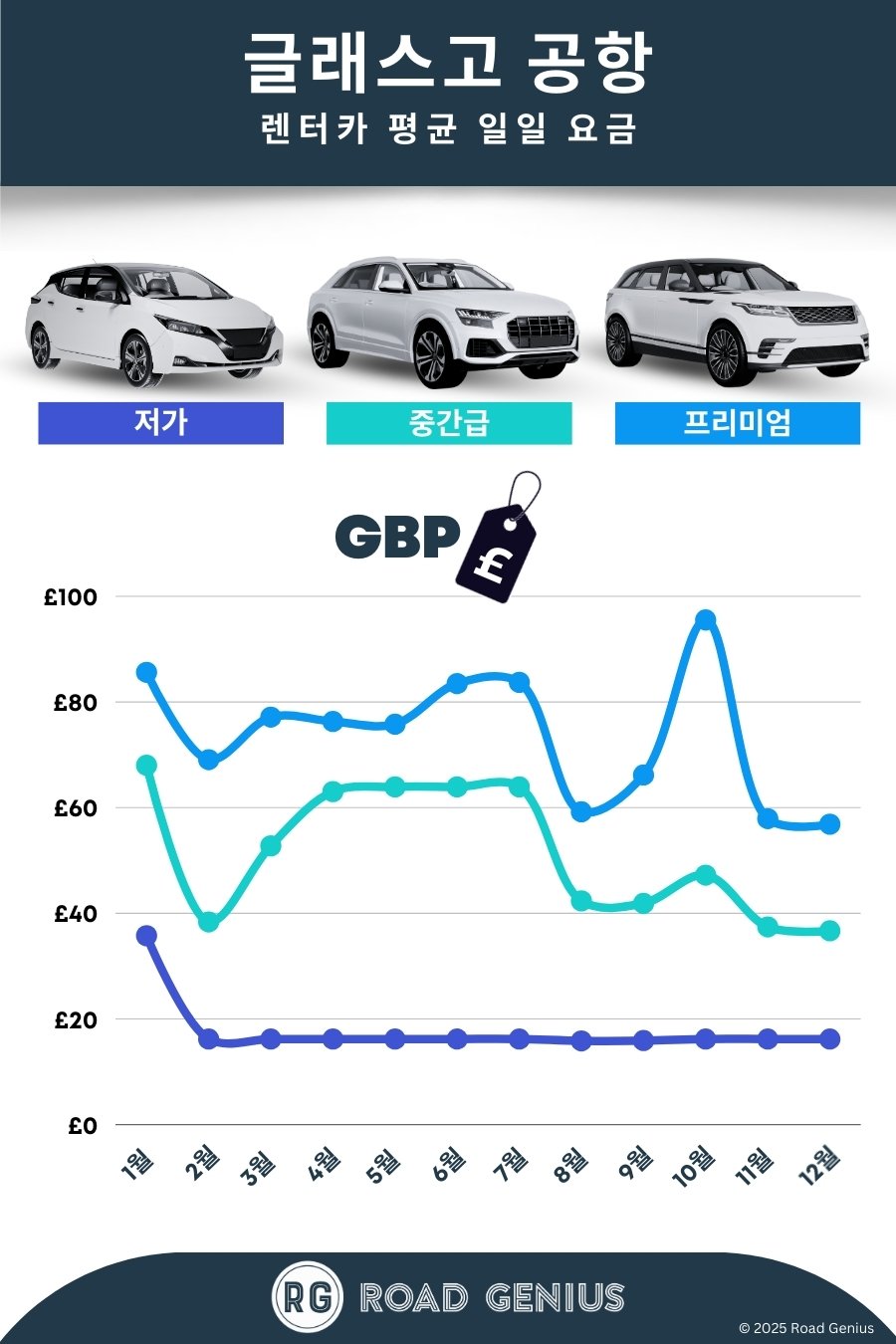 글래스고 시내에만 머물 예정이라면 첫날부터 차를 빌리지 마세요. 공항 렌트에는 추가 요금이 포함될 수 있습니다. 시내에서는 대중교통을 이용하고, 외곽으로 떠나는 날 시내 영업소에서 차를 빌리는 것이 경제적입니다.