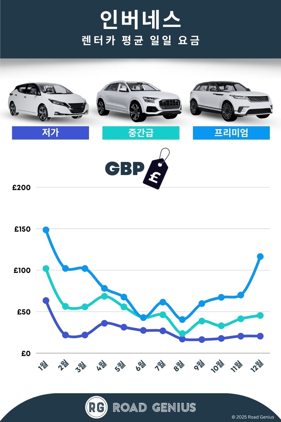편도 대여와 왕복 대여 비교하기: 차량을 다른 장소에 반납할 경우 편도 반납 수수료(one-way fee)가 부과될 수 있습니다. 노스 코스트 500(NC500)은 순환 코스이므로, 인버네스에서 대여해 다시 인버네스로 반납하는 것이 비용을 절약하는 방법입니다.