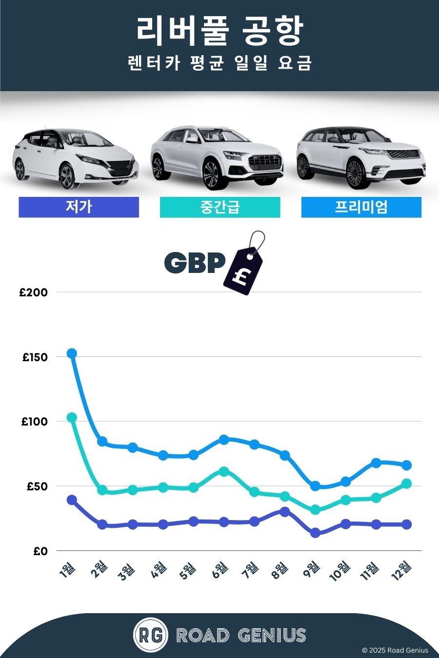 다른 도시에 반납할 수 있나요? 네, 편도 대여(One-way Rental)가 가능합니다. 리버풀 공항에서 빌려 다른 도시에 반납할 수 있으며, 편도 수수료(약 GBP 30~100)가 부과됩니다. 예약 시 미리 지정해야 합니다.