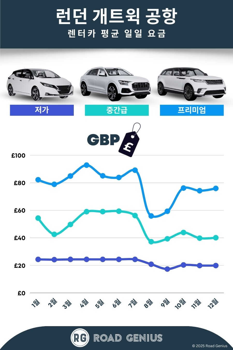 로드지니어스와 함께 런던 개트윅 공항(LGW)에서 가장 합리적인 렌터카를 찾아보세요. SUV, 해치백, 미니밴 등 다양한 차종의 실시간 요금을 비교하고, 예약 수수료 없이 바로 예약할 수 있습니다. 북쪽 터미널과 남쪽 터미널의 공항 내·외부 지점 요금을 비교하고, 자동 변속기나 MPV(다목적 차량) 등 원하는 조건으로 검색하세요. 결제 전 최종 비용을 투명하게 확인할 수 있습니다.