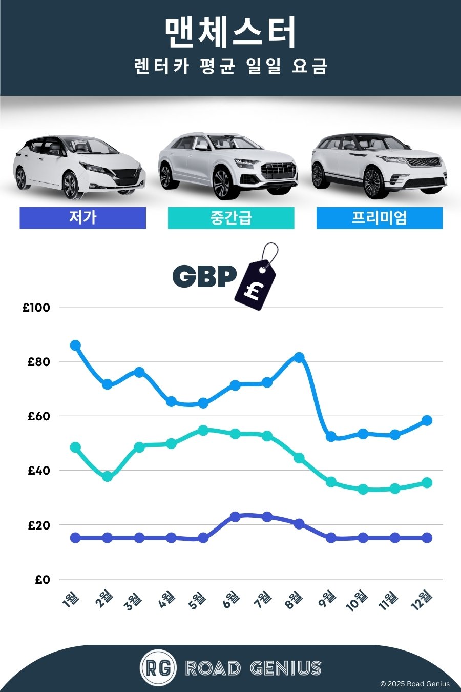 맨체스터에서 렌터카를 빌릴 수 있는 최저 연령은 몇 살인가요? 일반적으로 만 23세 또는 만 25세 이상부터 대여가 가능합니다. 만 21~24세 운전자는 '저연령 운전자 추가 요금(Young Driver Surcharge)'을 지불하고 소형차 등급에 한해 렌트가 가능할 수 있습니다. 업체별로 연령 규정이 다르니 예약 전 반드시 확인하세요.