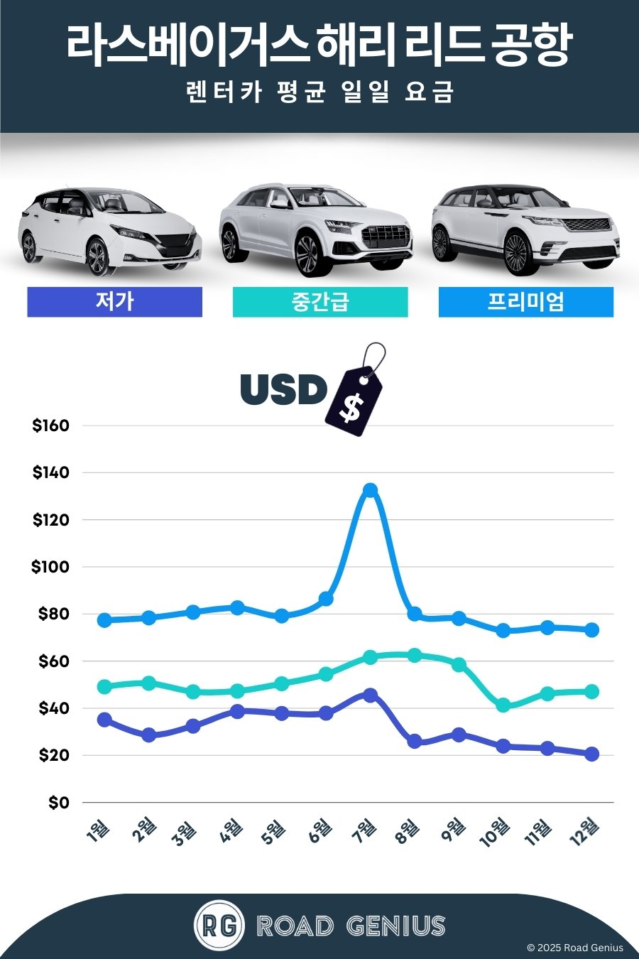 로드지니어스에서 라스베이거스 해리 리드 국제공항(LAS) 렌터카를 합리적인 가격으로 예약하세요. SUV, 소형차, 다인승 차량 등 다양한 차종의 실시간 요금을 비교하고, 예약 수수료 없이 간편하게 예약할 수 있습니다.