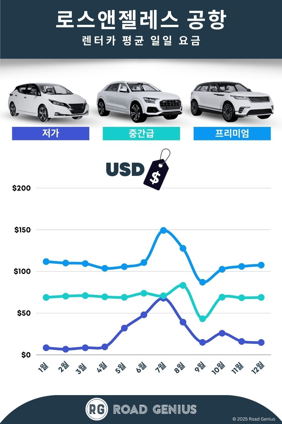 꼼꼼히 비교 예약하세요: 저희 사이트에서 여러 브랜드, 차종, 픽업 시간을 바꿔가며 최적 요금을 찾아보세요. LAX 렌터카 요금은 변동 폭이 크며, 소형 차량이 가장 저렴합니다.