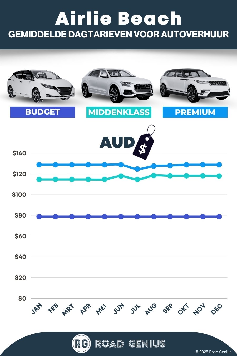 Gemiddeld kost autoverhuur in Airlie Beach ongeveer AUD 116 per dag, met de goedkoopste huurauto's al vanaf AUD 79 per dag.