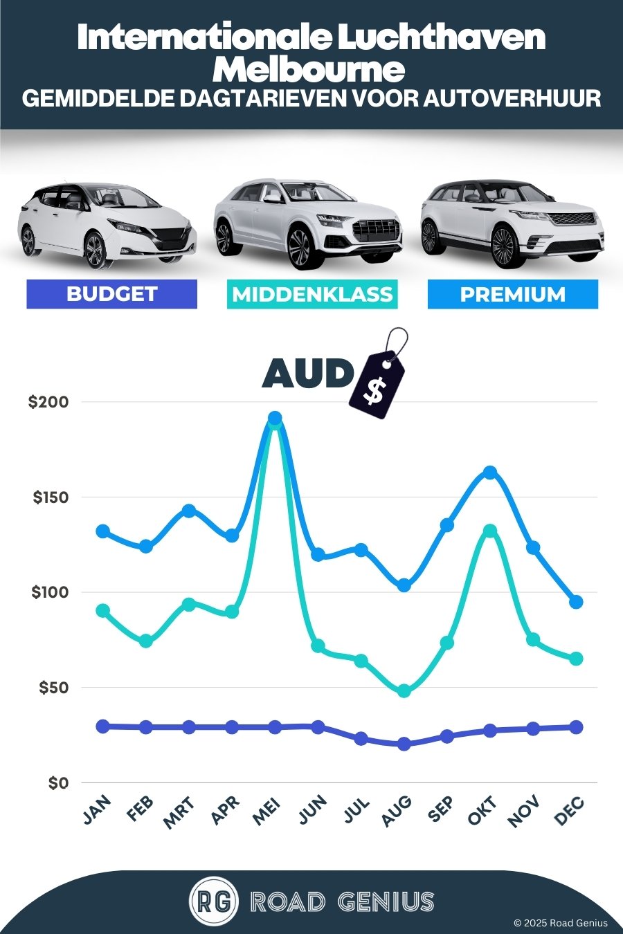 Gemiddeld kost een huurauto op Melbourne Airport (MEL) ongeveer AUD 111 per dag, met de goedkoopste huurauto's vanaf AUD 20 per dag.