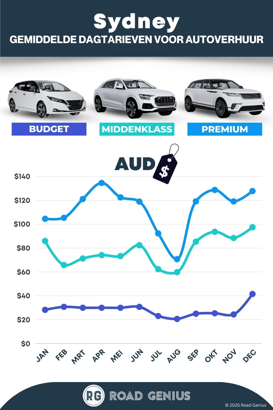 Gemiddeld kost autoverhuur in Sydney ongeveer AUD 97 per dag, met de goedkoopste huurauto's beschikbaar vanaf AUD 21 per dag.