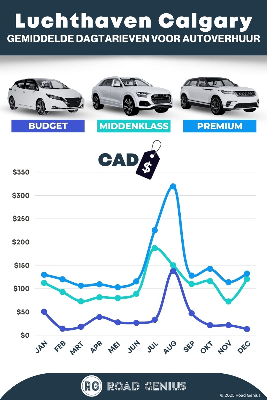 Gemiddeld kost autohuur op Luchthaven Calgary ongeveer CA$ 97 per dag, met de goedkoopste huurauto’s vanaf CA$ 13 per dag.