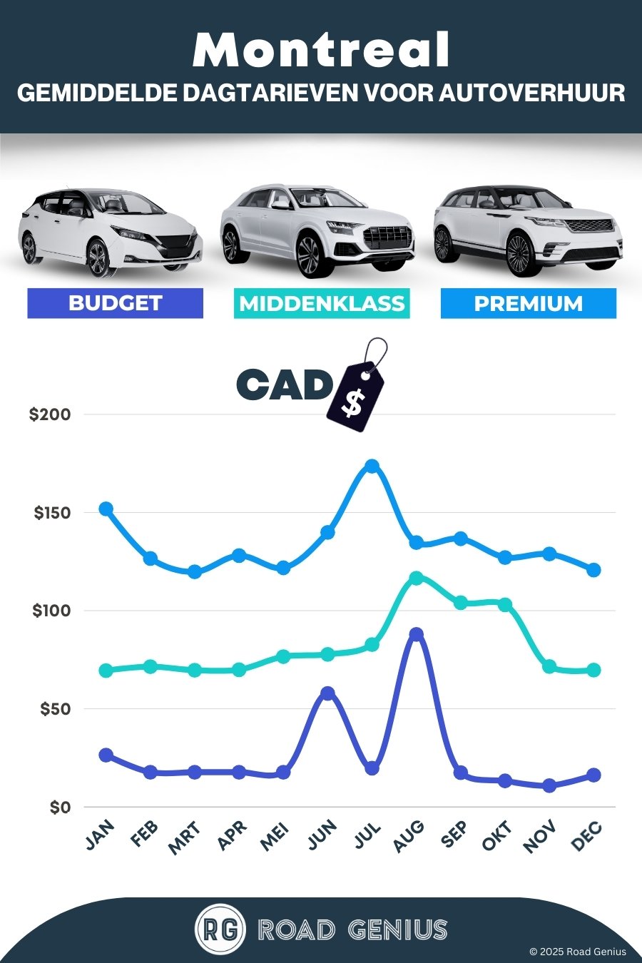 Gemiddeld kost autohuur in Montreal ongeveer CA$ 81 per dag, met de goedkoopste huurauto’s vanaf CA$ 11 per dag.