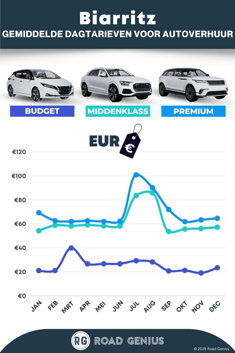 Vergelijk ophaallocaties. Huren in het centrum van Biarritz is vaak 10–15% goedkoper dan op de luchthaven. Kijk ook eens in Bayonne, 8 km verderop; in drukke weken ben je daar soms nog voordeliger uit.