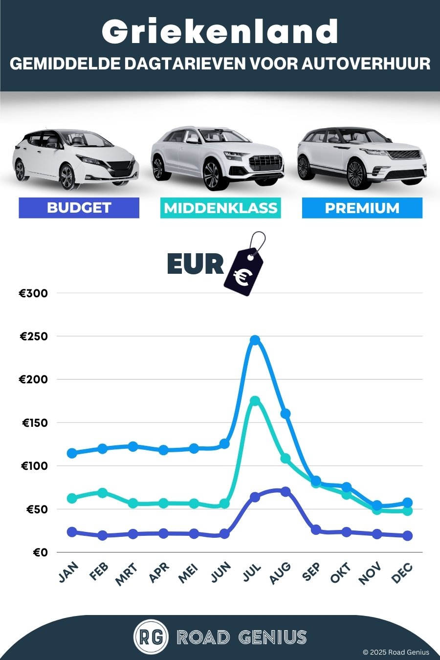 Gemiddeld kost autohuur in Griekenland ongeveer €73 per dag, met de goedkoopste huurauto’s vanaf €19 per dag.