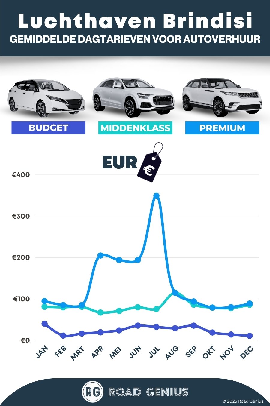 Stem je boeking af op het seizoen. In juli en augustus zijn huurauto's snel uitverkocht, dus reserveer 2–3 maanden van tevoren. Voor juni/september is 4–6 weken vooraf ideaal. Van november tot maart kun je vaak ook last-minute nog terecht.