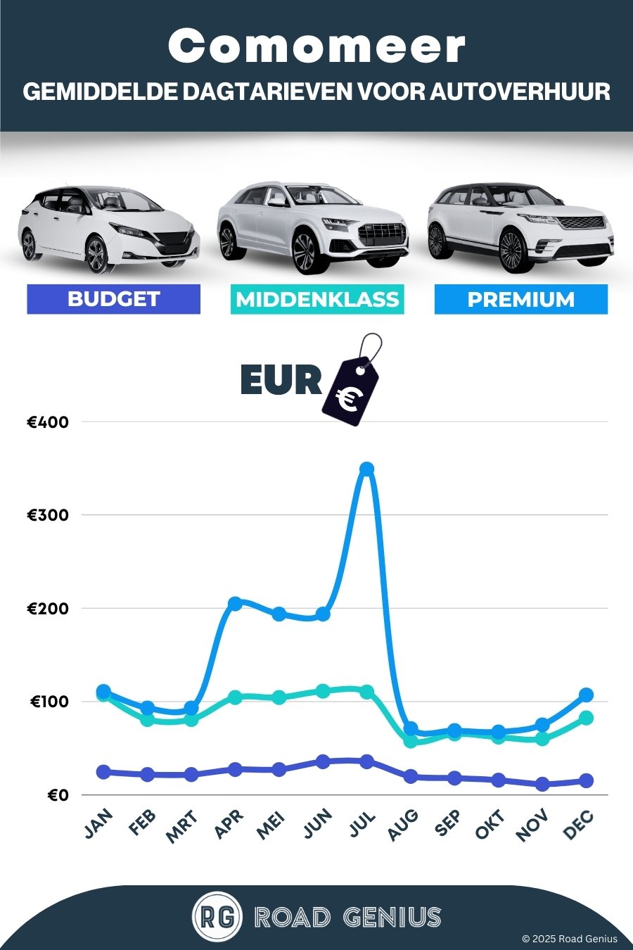 Gemiddeld kost autohuur in Comomeer ongeveer €81 per dag, met de goedkoopste huurauto’s vanaf €11 per dag.