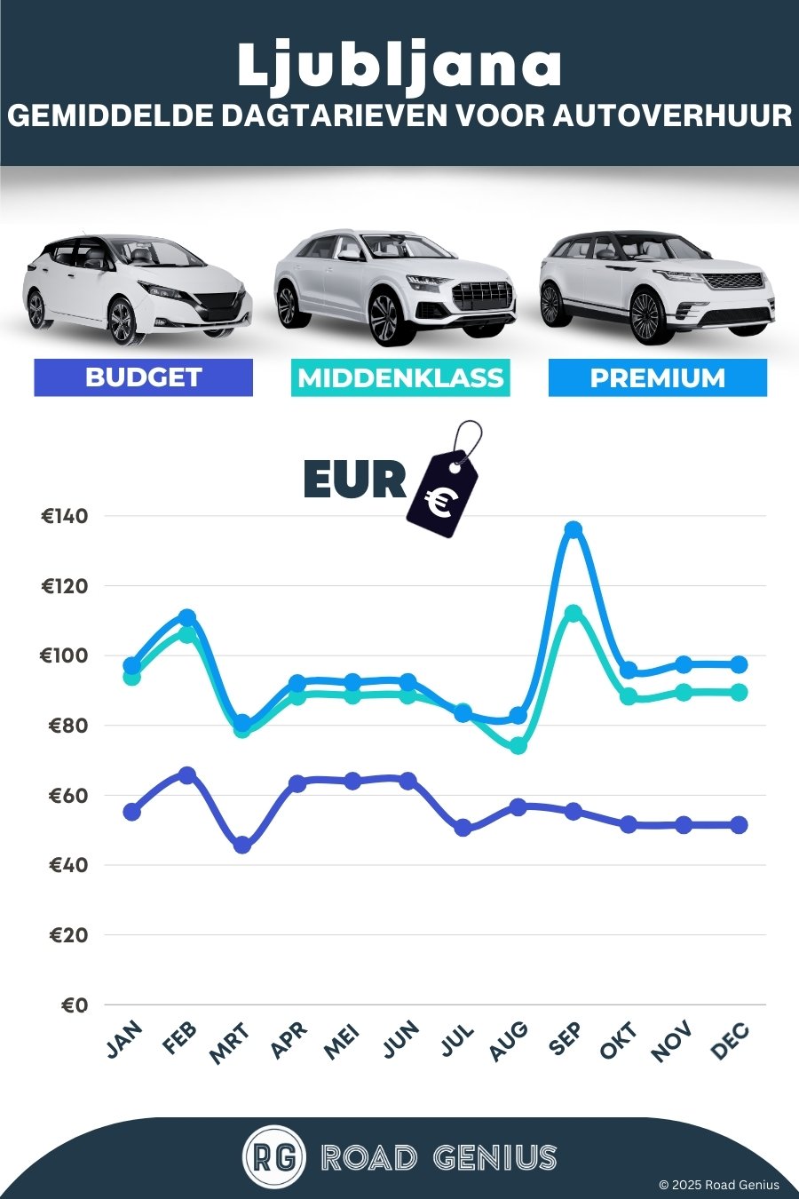 Gemiddeld kost autohuur in Ljubljana ongeveer €81 per dag, met de goedkoopste huurauto’s vanaf €46 per dag.