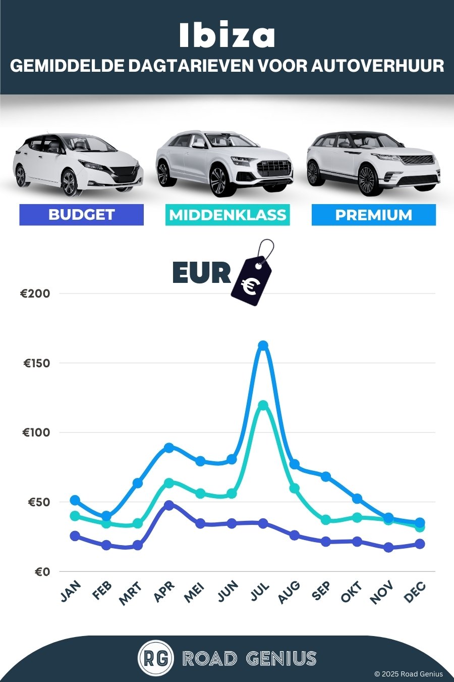 Gemiddeld kost autohuur in Ibiza ongeveer €49 per dag, met de goedkoopste huurauto’s vanaf €17 per dag.