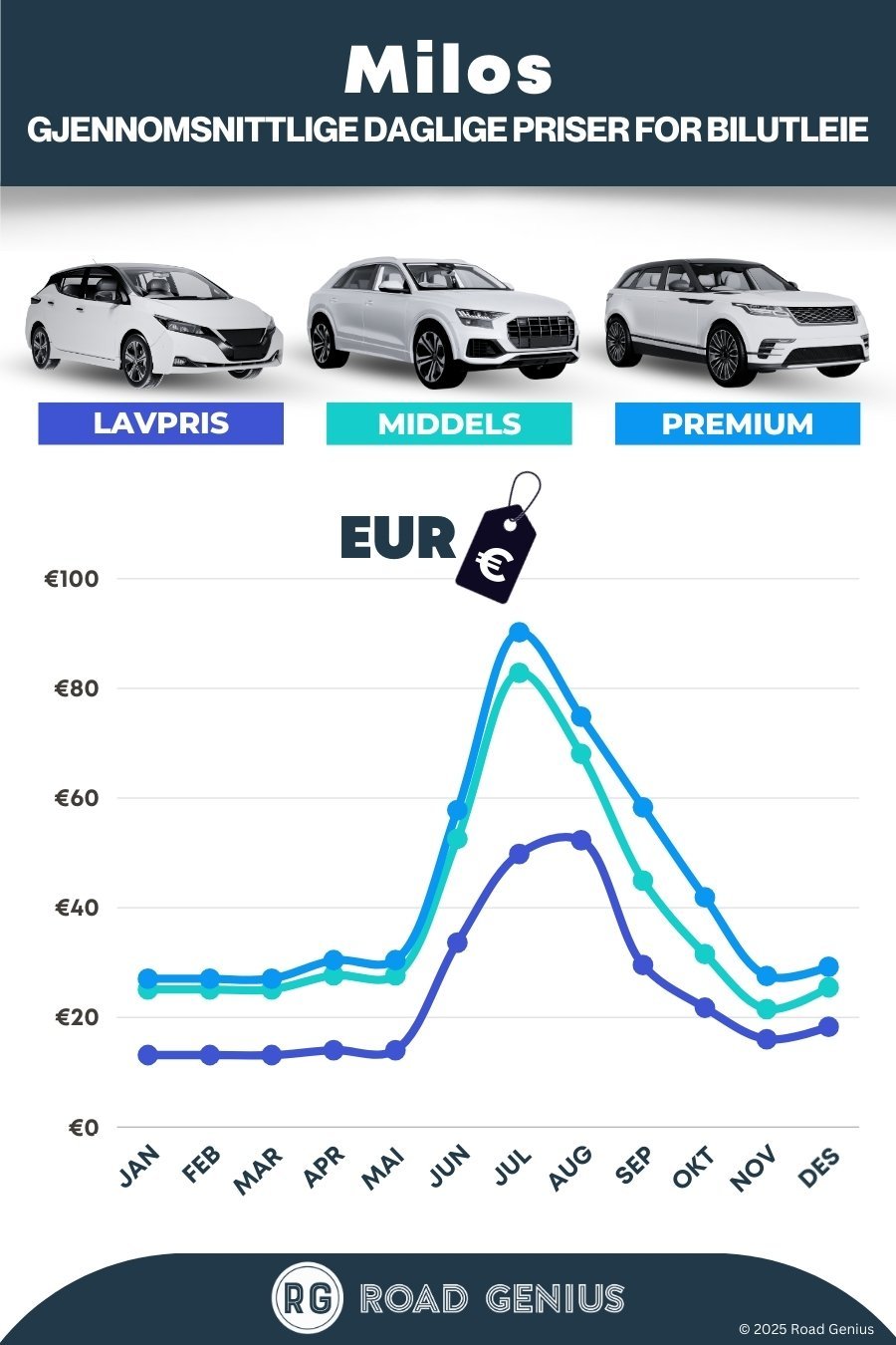 Merk: På Milos blir leiebiler ofte utsolgt i juli og august. Vi anbefaler å bestille flere måneder i forveien.