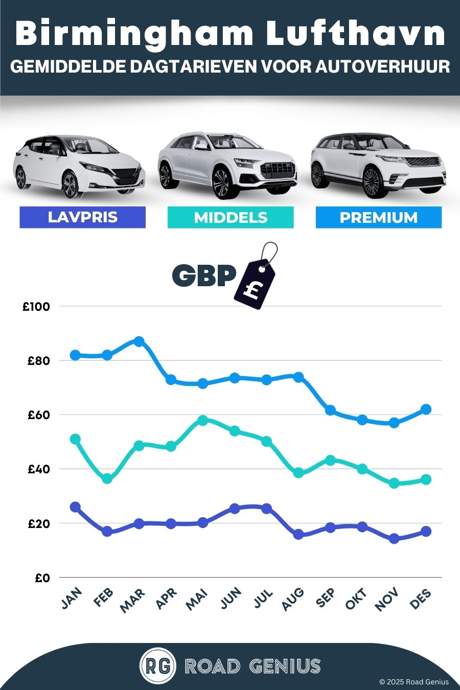 Sammenlign hentested: Henting på flyplassen koster ofte 15–20 % mer. Skal du tilbringe de første dagene i Birmingham sentrum, kan du ta toget dit og leie bil derfra for å unngå flyplassgebyret.
