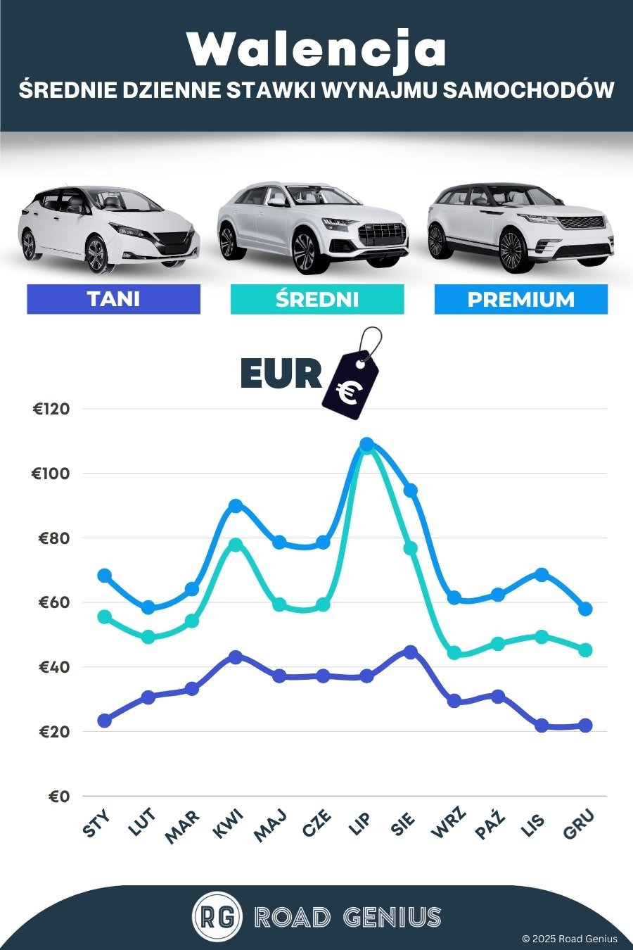 Rezerwuj z wyprzedzeniem. Na lipiec i sierpień rezerwuj auto z kilkumiesięcznym wyprzedzeniem, bo wtedy dostępność jest ograniczona. Zimą i poza sezonem warto sprawdzić ceny bliżej terminu wyjazdu, ponieważ mogą spaść.