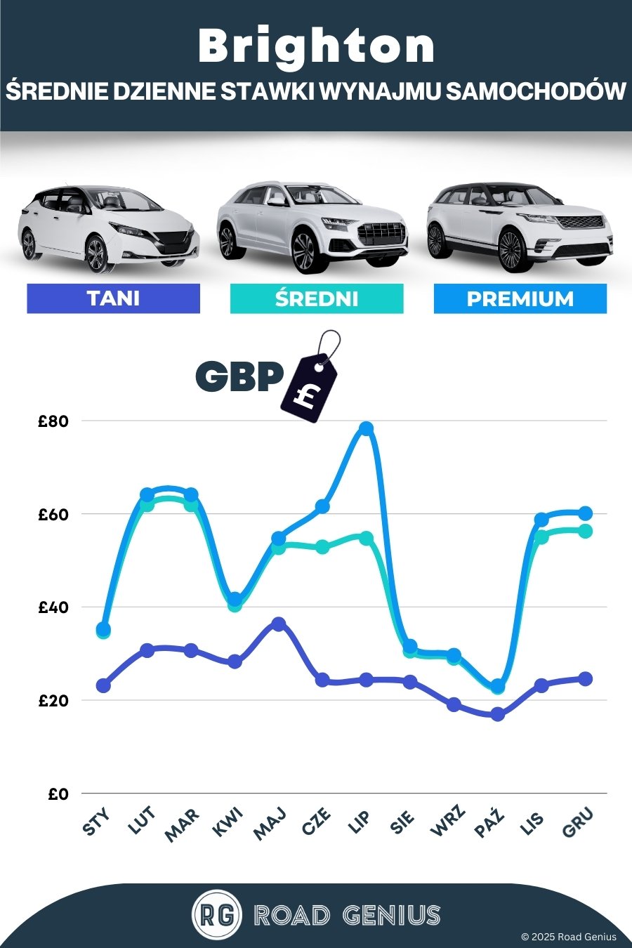 Rezerwuj z odpowiednim wyprzedzeniem: W szczycie sezonu w Brightonie (lato i dni wolne) zarezerwuj auto z 2–3-miesięcznym wyprzedzeniem. Poza sezonem (listopad–marzec) ceny mogą być nawet o połowę niższe, więc warto je porównywać i polować na okazje.