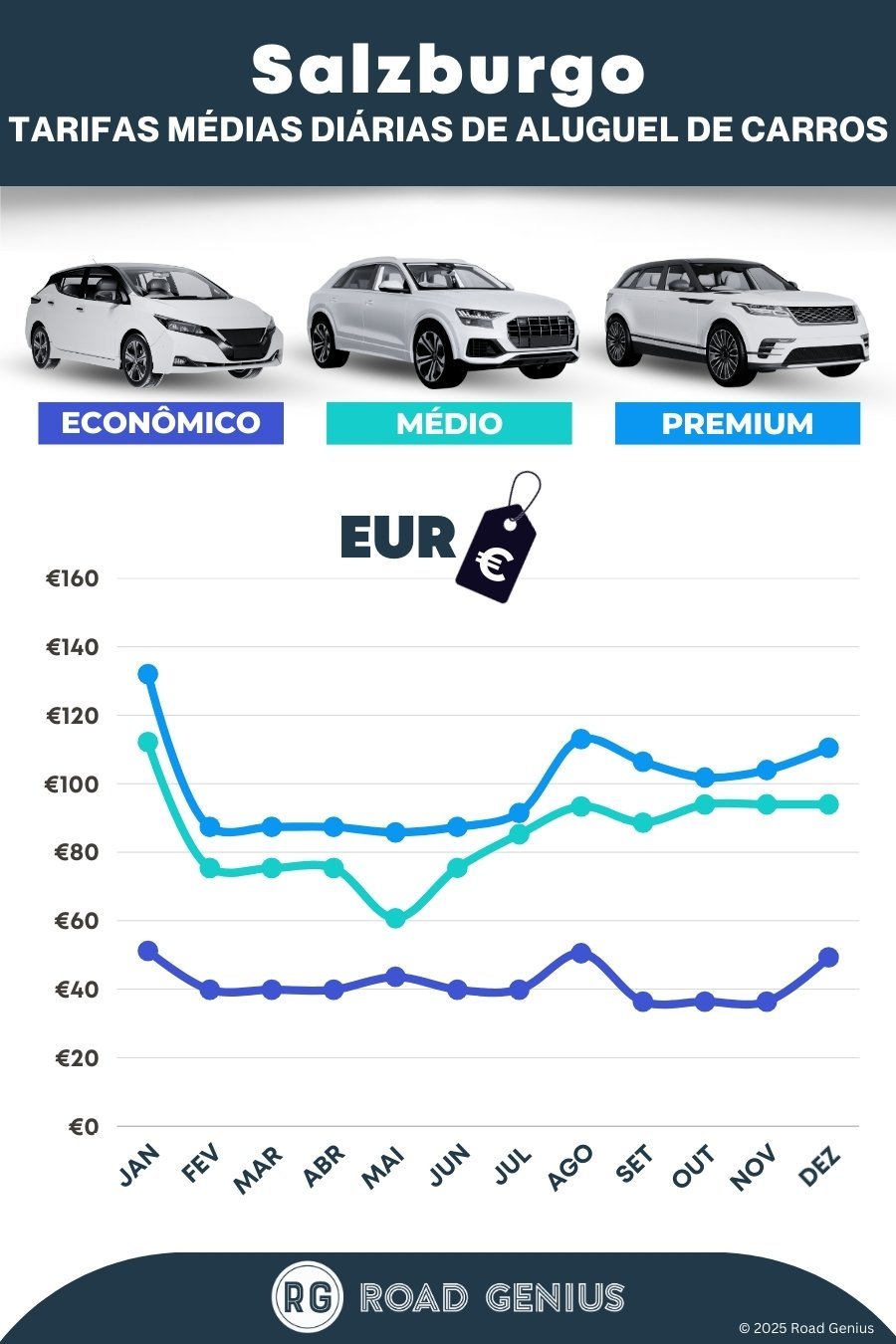 Em média, o aluguel de carros em Salzburgo custa cerca de €76 por dia, com as opções mais baratas a partir de €36 por dia.