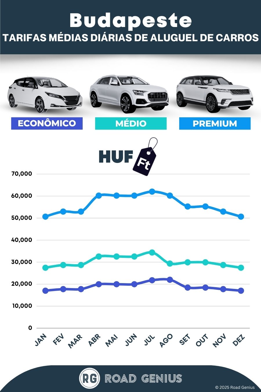 Em média, o aluguel de carros em Budapeste custa cerca de 35.103 HUF por dia, com as opções mais baratas a partir de 17.023 HUF por dia.