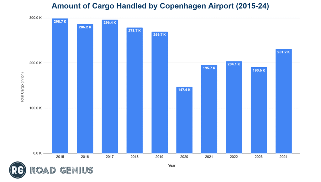 - In 2024, the airport moved 231,180 tons of cargo, up 21.3% YoY from 190,617 tons (2023).