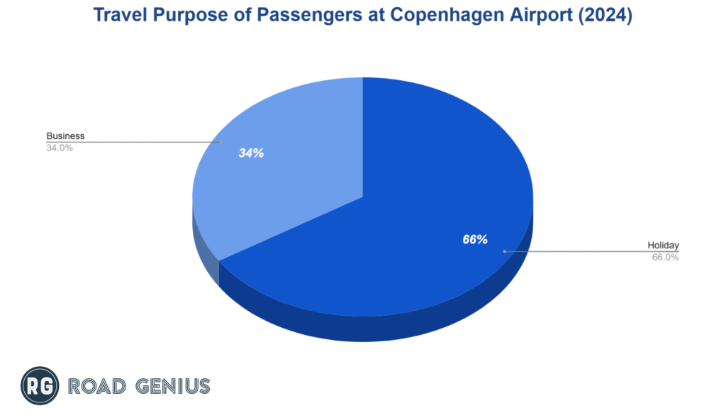 - 66% of passengers at Copenhagen airport were holiday travellers in 2024.