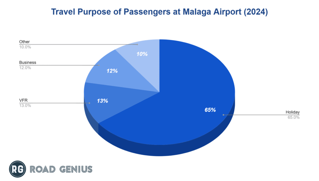 Málaga Airport has a strong international profile. Most passengers travel for leisure from major European destinations.