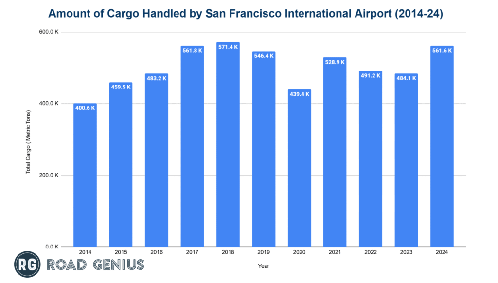 San Francisco International Airport handles around 500,000 metric tons of cargo each year.