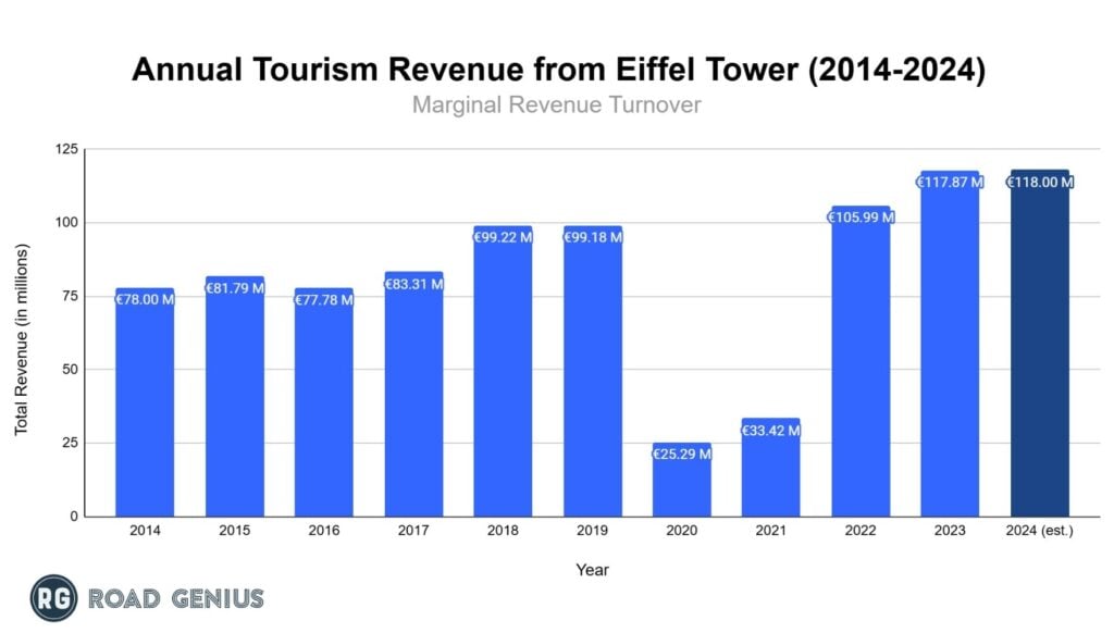 - In 2019, the monument welcomed 6.2 million visitors, generating €99.18 million in revenue.