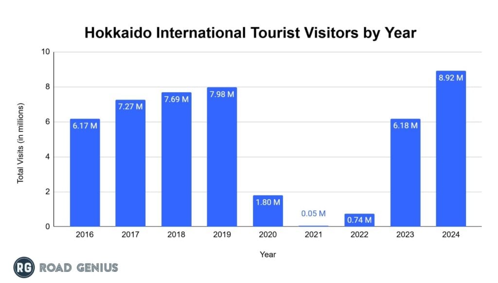 - In 2019, Hokkaido welcomed 7.98 million international visitors, marking the highest number of recorded visitors in history at that time.
