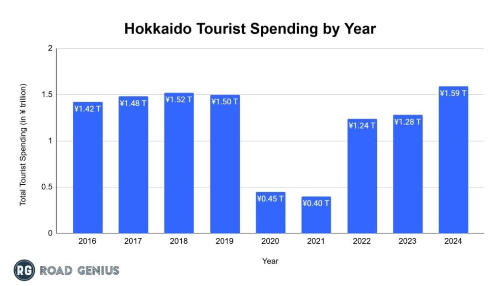 Tourists spend over ¥1.59 trillion in Hokkaido each year.