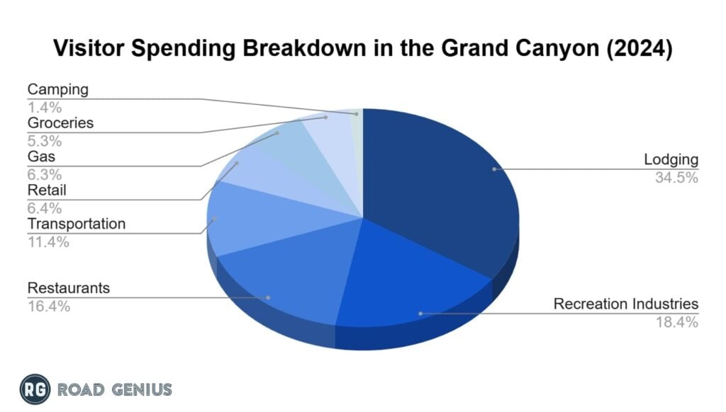 - In 2024, visitors to the Grand Canyon spent a total of $312 million on lodging, making it the highest expenditure.