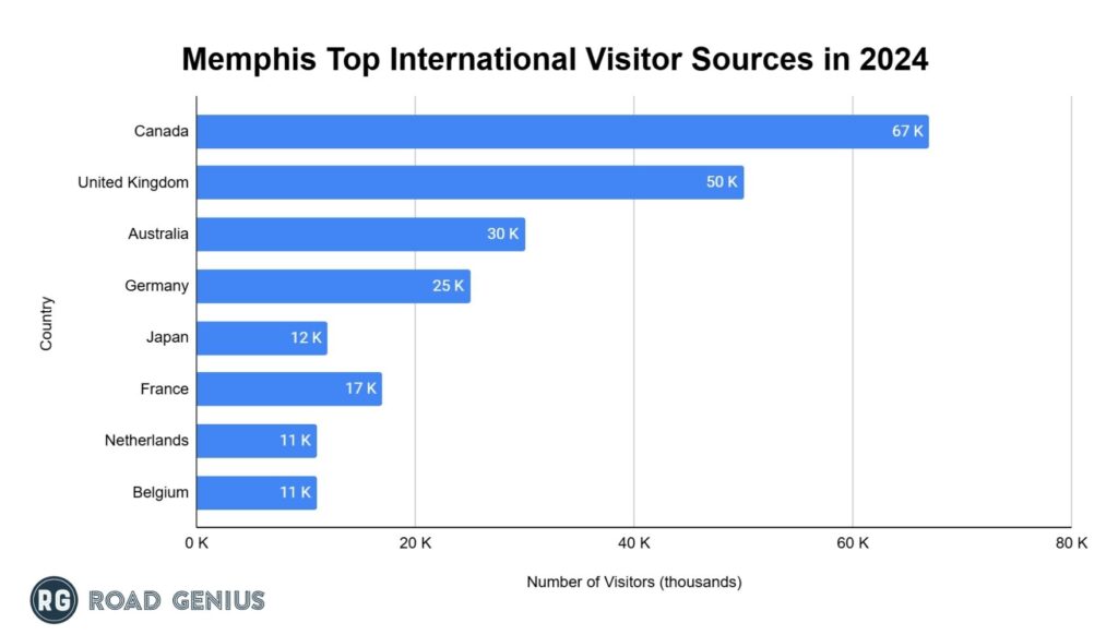 Canada was Memphis’s largest source of international tourists, accounting for approximately 24% of all foreign visitors in 2024.