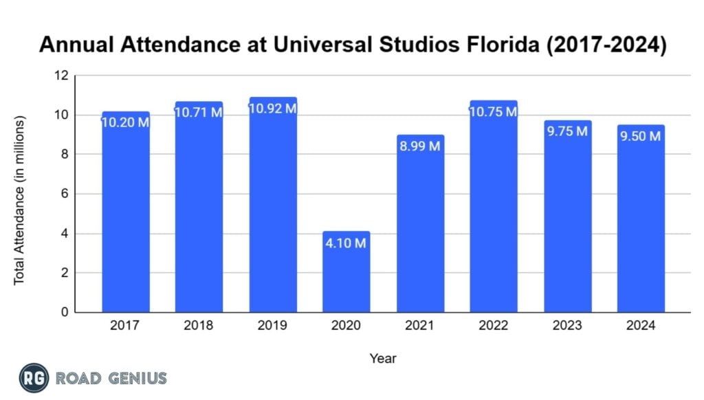 - Universal Studios Florida, famed for bringing movies to life, has seen fluctuating attendance figures over recent years.