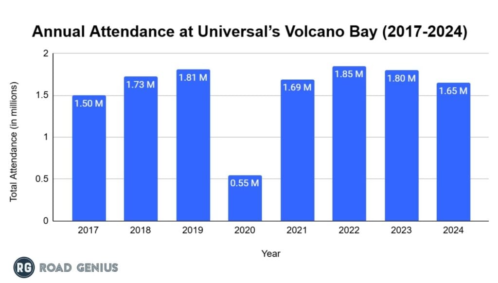 In 2024, 1.65 million tourists visited Volcano Bay.
