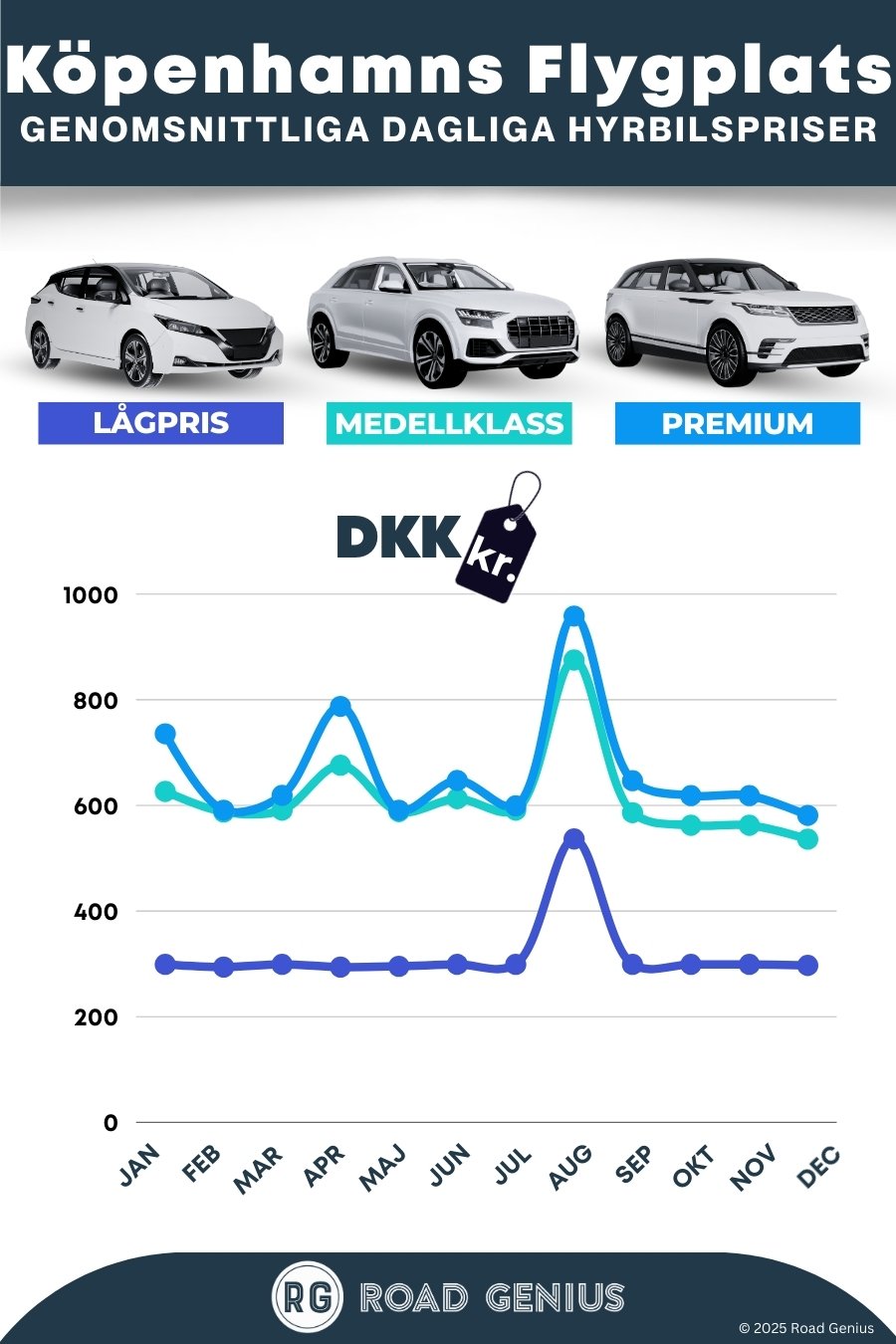 I genomsnitt kostar en bilhyra på Köpenhamns flygplats omkring 533 kr per dag, med de billigaste priserna från 294 kr per dag.