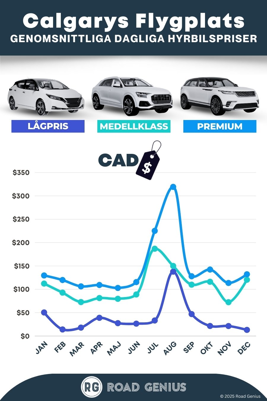 I genomsnitt kostar en bilhyra på Calgary flygplats omkring CAD $97 per dag, med de billigaste priserna från CAD $13 per dag.