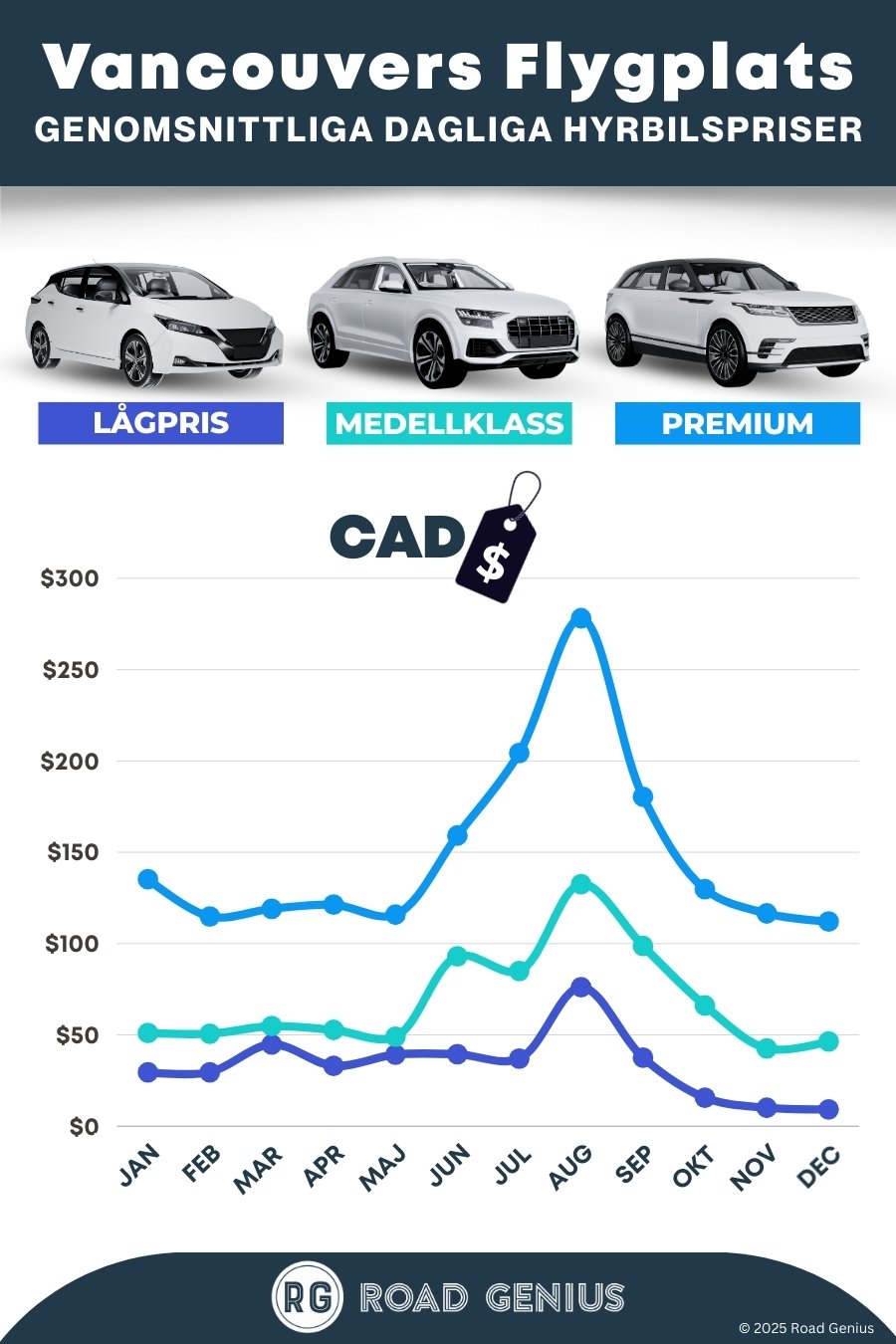 Med Road Genius hittar du enkelt prisvärda hyrbilar på Vancouver International Airport (YVR). Jämför priser och boka allt på samma ställe. Hyrbilskontoren på flygplatsen ligger bara en kort promenad från ankomsthallen. De flesta har långa öppettider, så du kan snabbt ta dig vidare till downtown Vancouver, Richmond eller längs Sea to Sky Highway mot Whistler.
