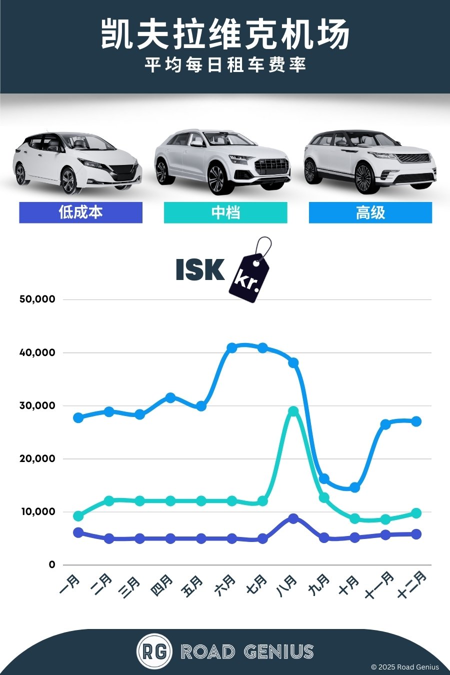 平均而言,凯夫拉维克机场 的汽车租赁每日费用约为 15,750 ISK,最低租金为每日 4,973 ISK。