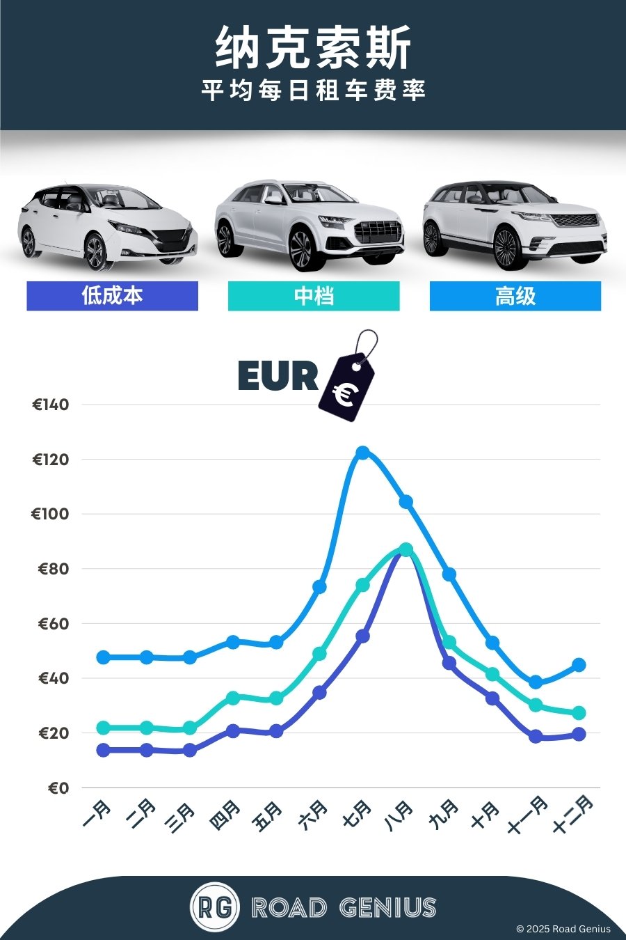 通过 Road Genius 比较纳克索斯各大租车公司的价格。从经济型小车到大型 SUV 和厢式车,你都能在便利的取车点找到实惠的价格。你可以在纳克索斯机场(JNX)、纳克索斯港口或纳克索斯镇(Chora)取车,灵活畅游海滩和山村。7 月至 8 月车辆紧张,尤其是自动挡和家庭车型,建议早预订。