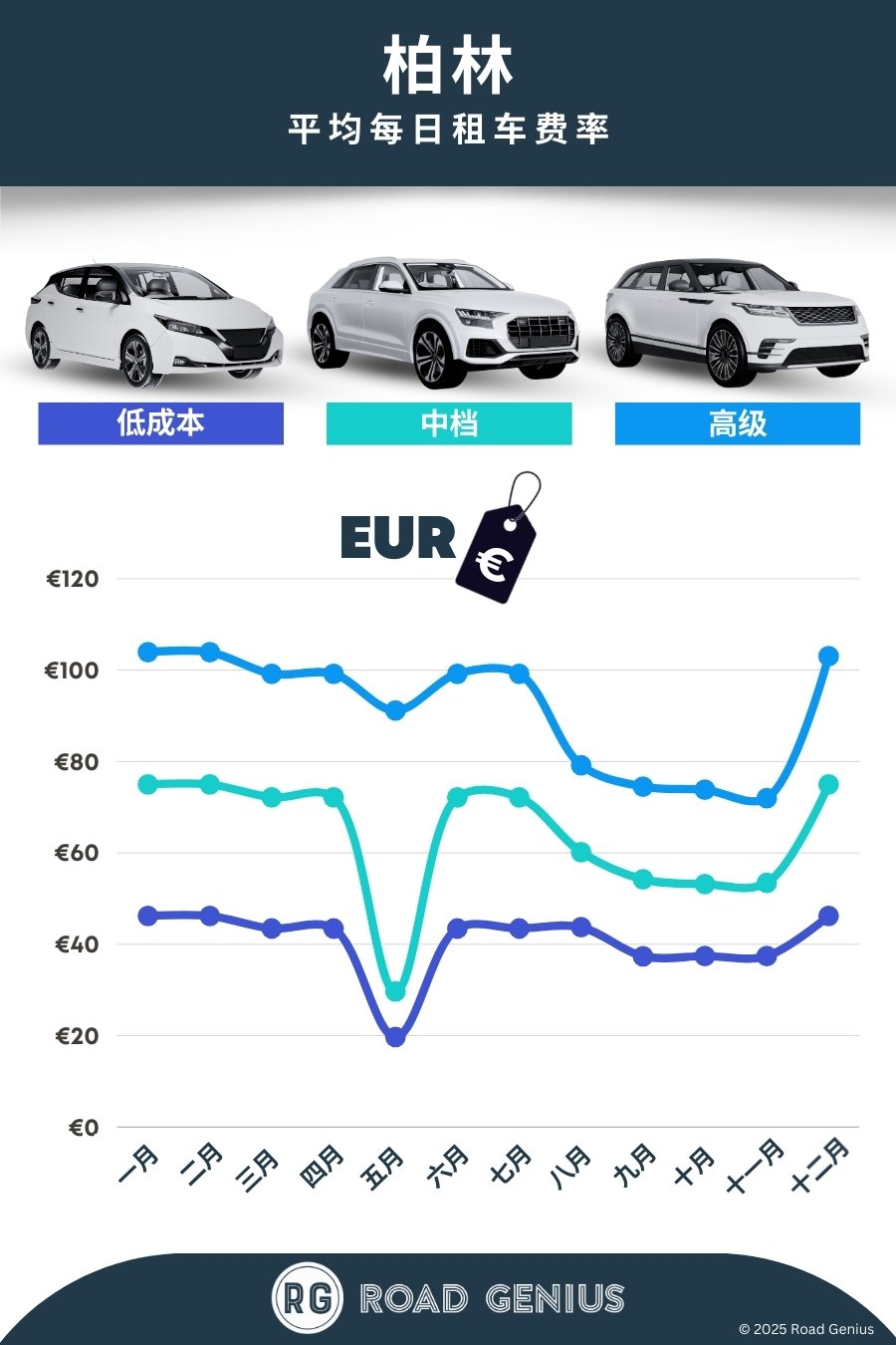 通过 Road Genius 在柏林租车非常便捷。你可以一站式比较德国数十家租车公司的价格,无预订手续费。取车地点灵活,可选择柏林勃兰登堡机场(BER)、柏林中央火车站(Hauptbahnhof)或市区门店(如亚历山大广场、选帝侯大街 Kurfürstendamm)。车型丰富,涵盖经济型、SUV、电动车和厢式车。你还可以按照需求筛选自动挡、异地还车或跨境前往波兰等选项。夏季及大型活动期间,建议提前预订。