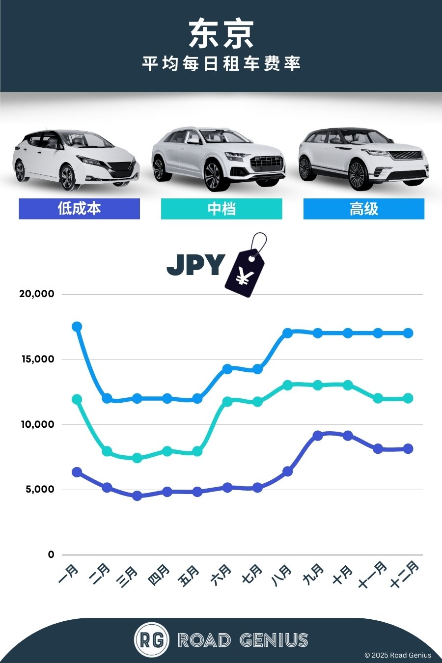 平均而言,东京 的汽车租赁每日费用约为 ¥10,734,最低租金为每日 ¥4,546。
